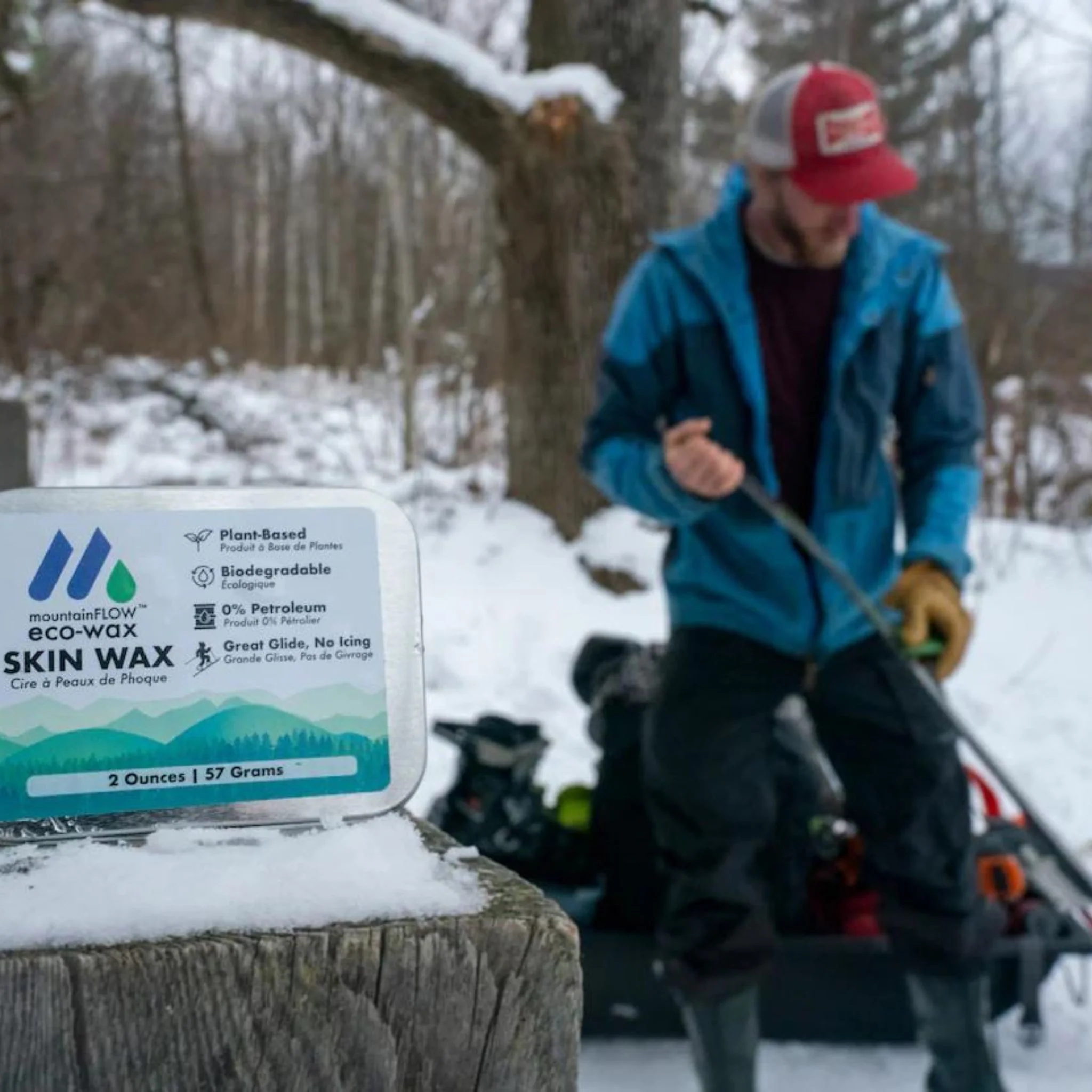 mountainFLOW’s rub-on skin wax is super easy to use and helps prevent icing on climbing skins (which is the worst!)